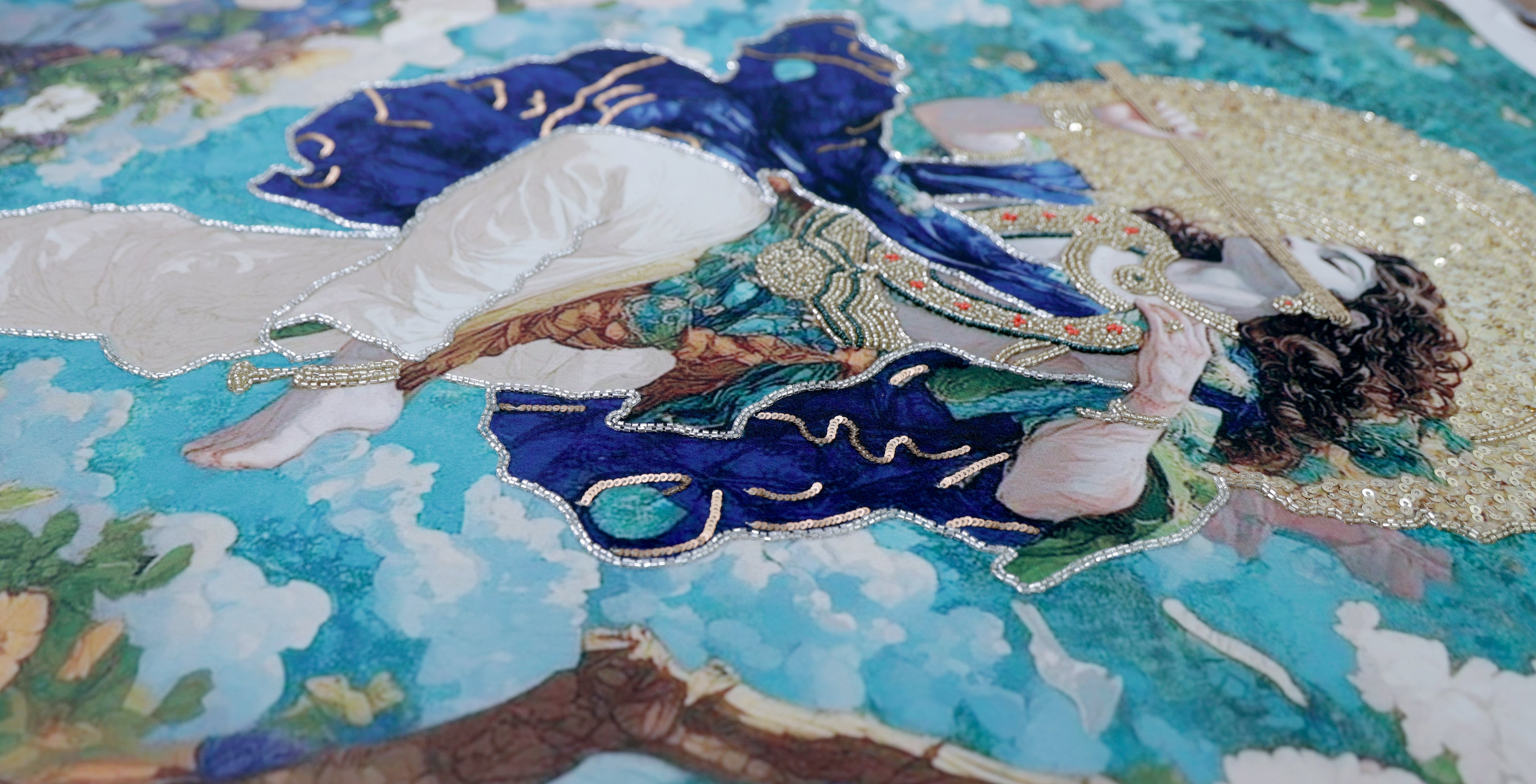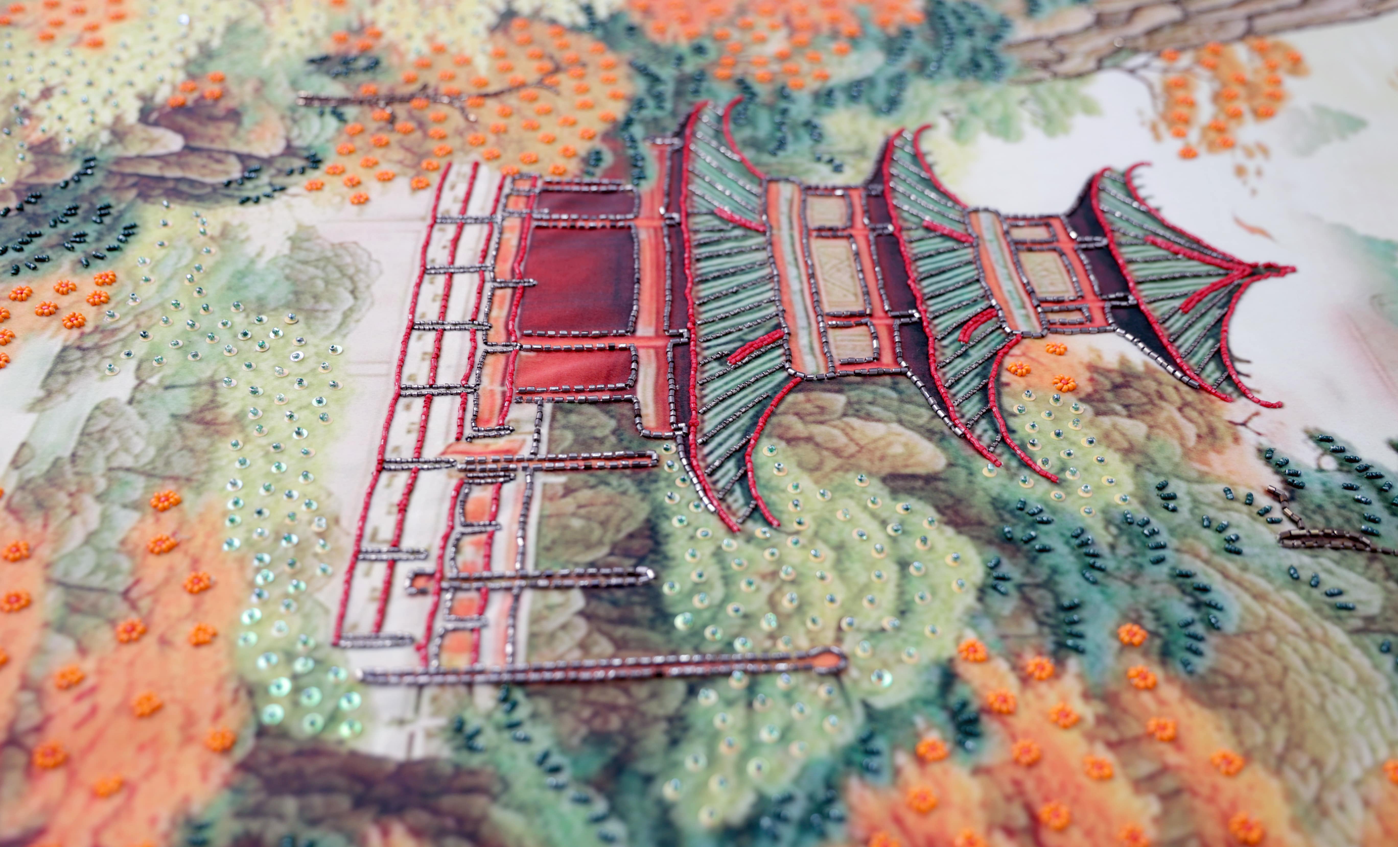 Our embroidered artworks are durable and easy to maintain. They can be dry-cleaned periodically and gently brushed on a regular basis to remove any surface dust, ensuring they retain their brilliance for years to come.