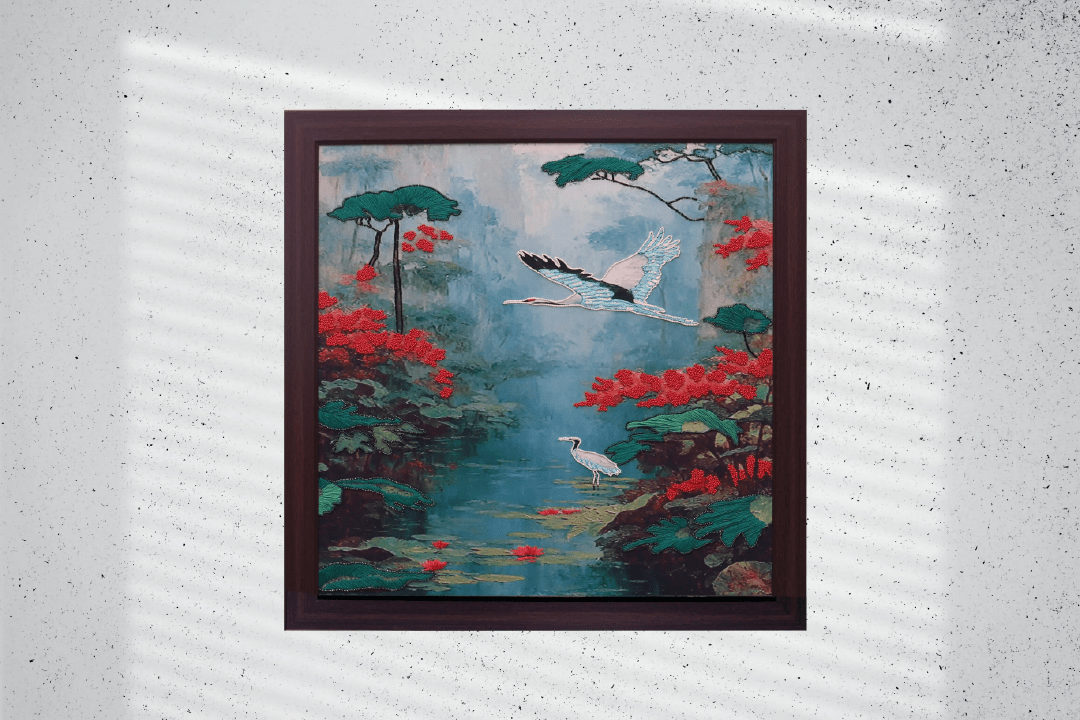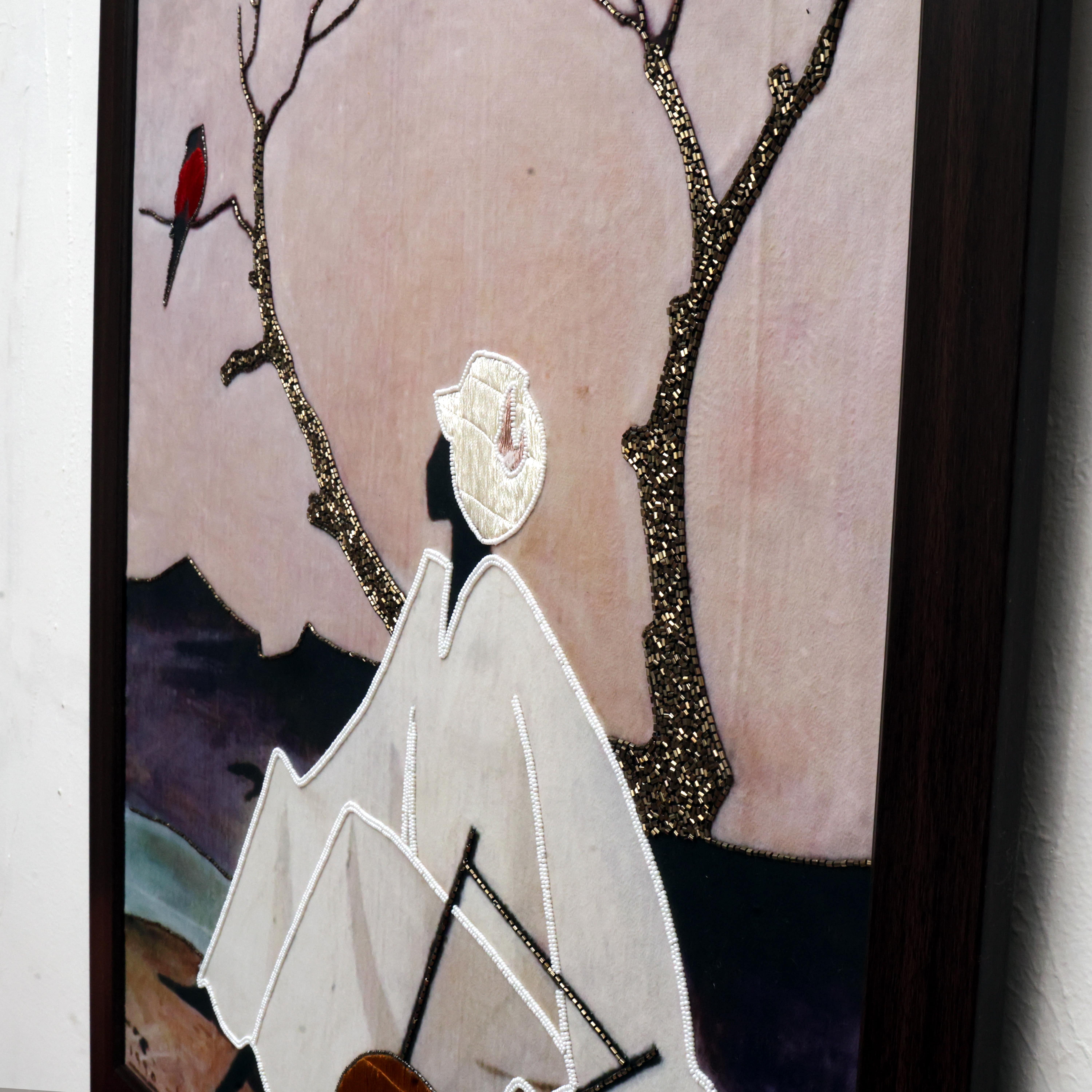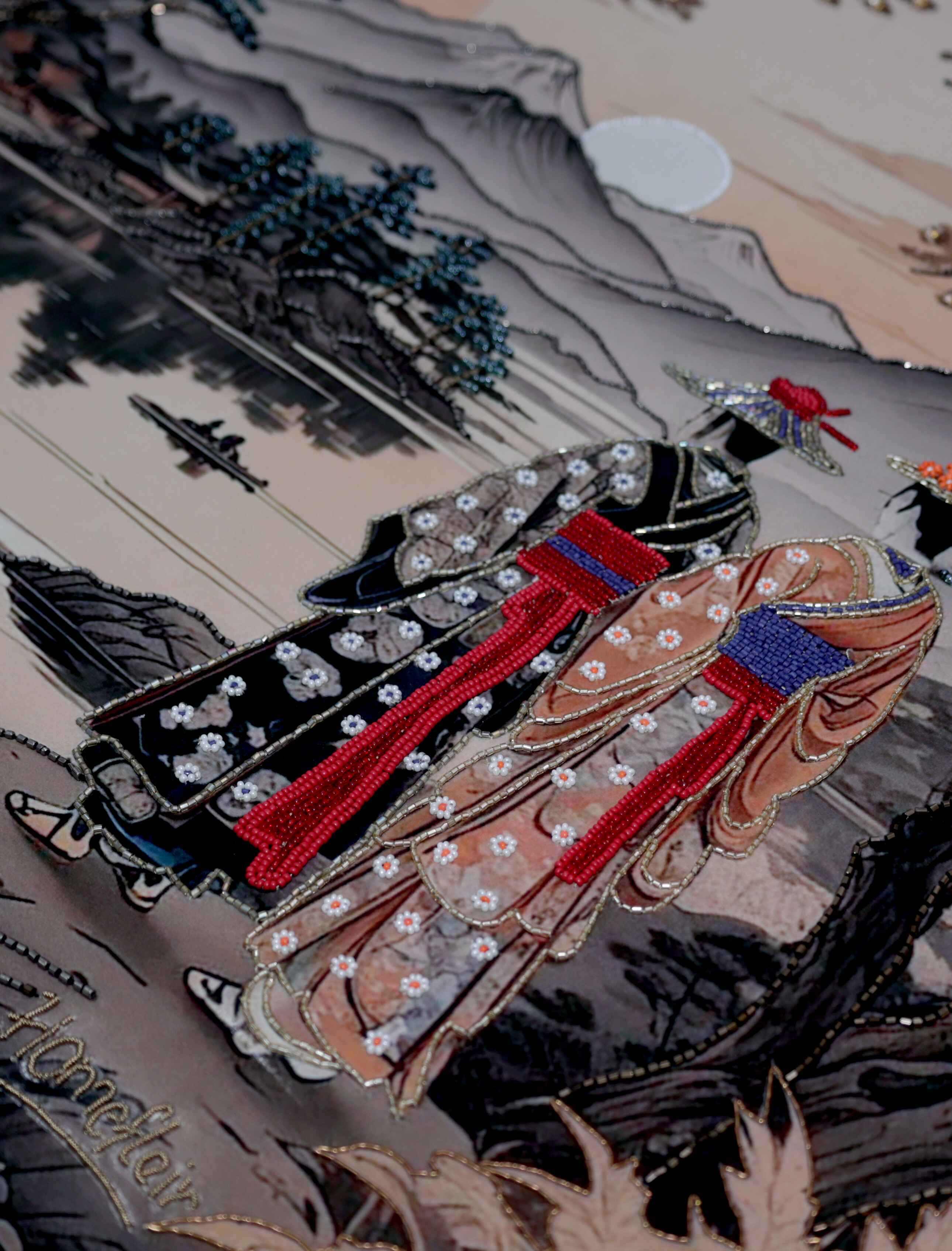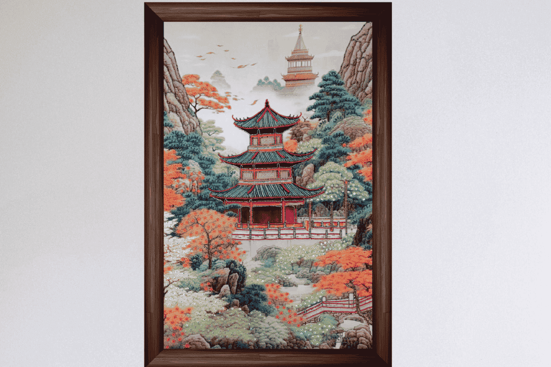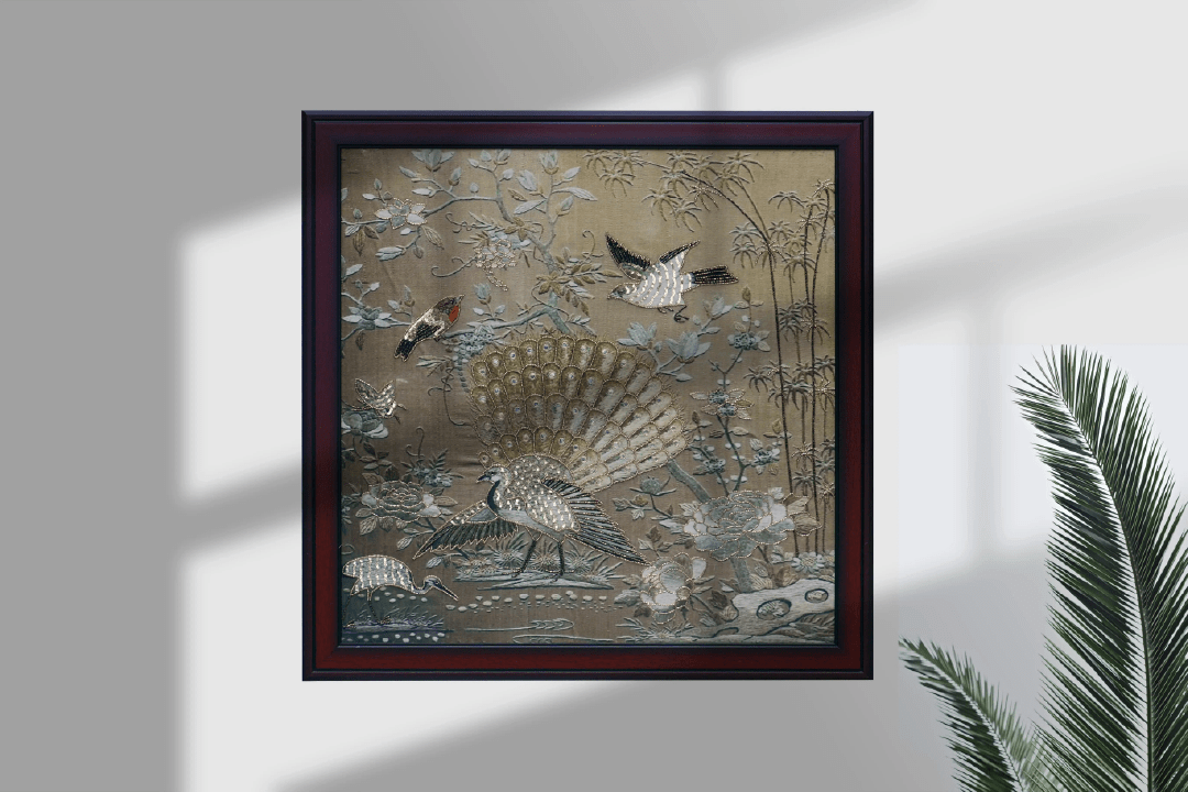 Our embroidered artworks are durable and easy to maintain. They can be dry-cleaned periodically and gently brushed on a regular basis to remove any surface dust, ensuring they retain their brilliance for years to come.